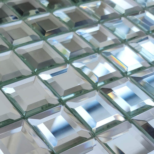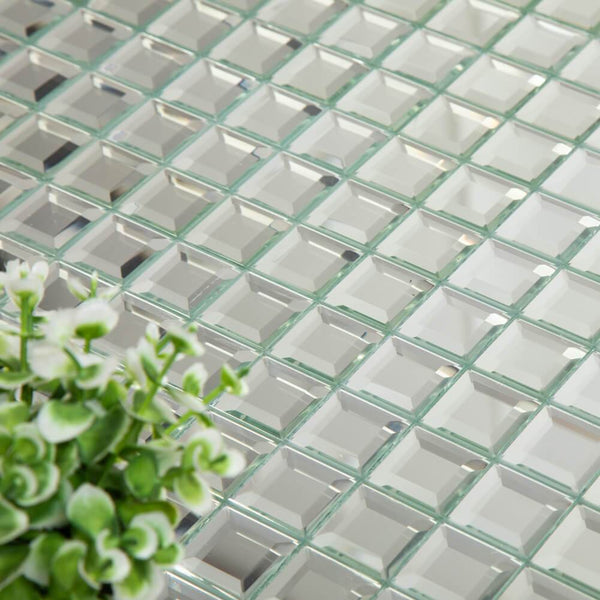 The iridescent appearance and sleek touch of Silver MirrorGlass Mosaic lend itself to be mixed and matched perfectly with your bathroom, kitchen or any space craving a chic yet elegant look.The glass will reflect light, rather than absorb it, which means this tile will create a luminous radiance that is unmatched by any other material.Add a little sparkle to your home courtesy of Diflart! We produce only the most beautiful and elegant mosaic tiles, so that no matter the project, we will help make your home look clean, modern, and fresh for years to come.