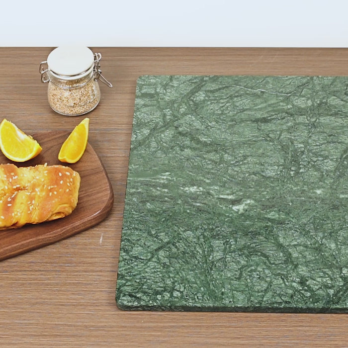 Diflart Natural Marble Stone Cutting Board for Kitchen, 16x16 Inch, Green, Marble Slab Pastry Board Large with Non-Slip Feet for Backing, Cheese, Chocolate, Pack of 1 Piece