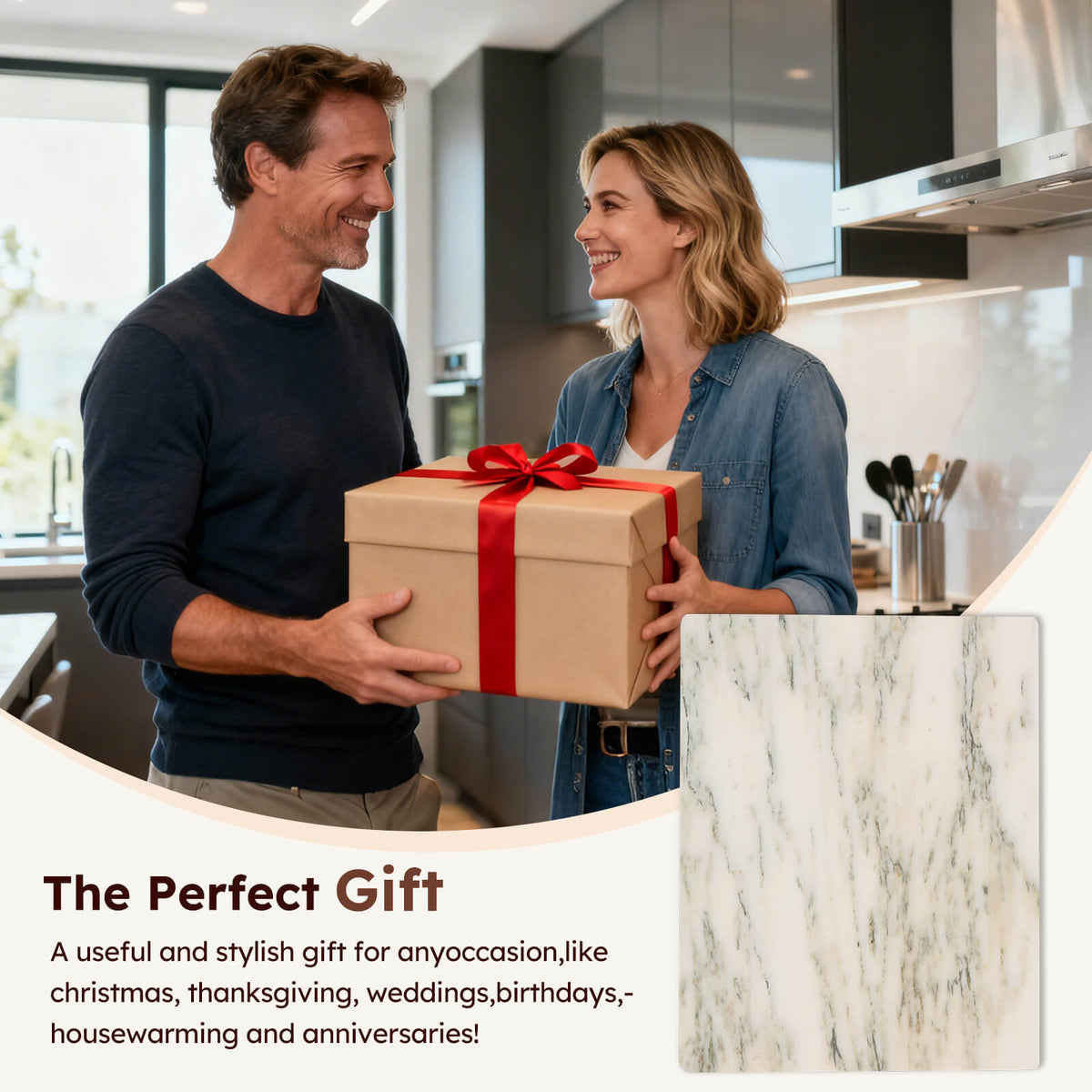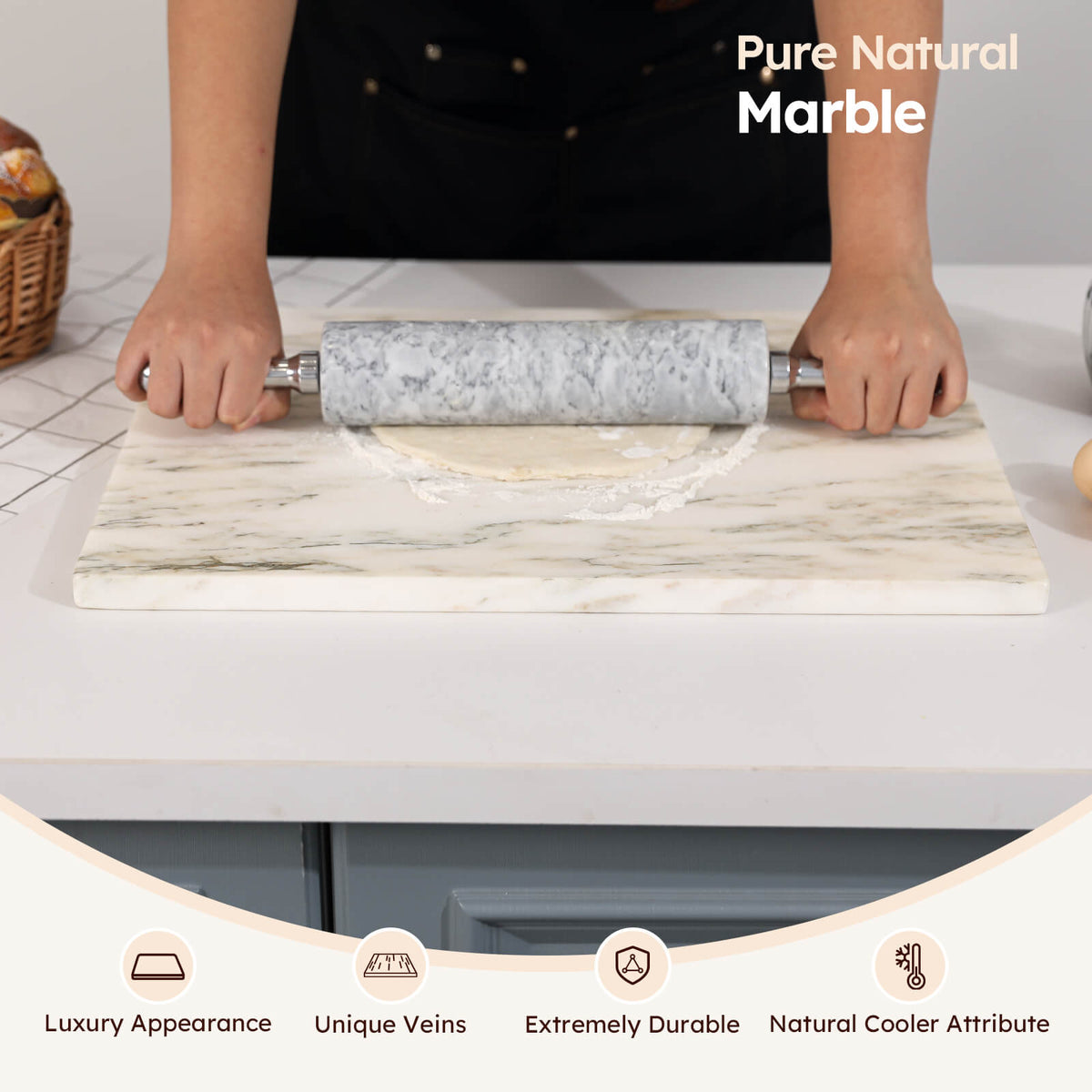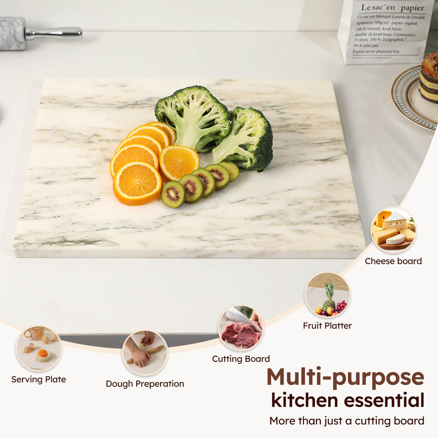 Diflart Natural Marble Stone Cutting Board for Kitchen, 16x20 Inch, Ink White, Marble Slab Pastry Board Large with Non-Slip Feet for Backing, Cheese, Chocolate, Pack of 1 Piece