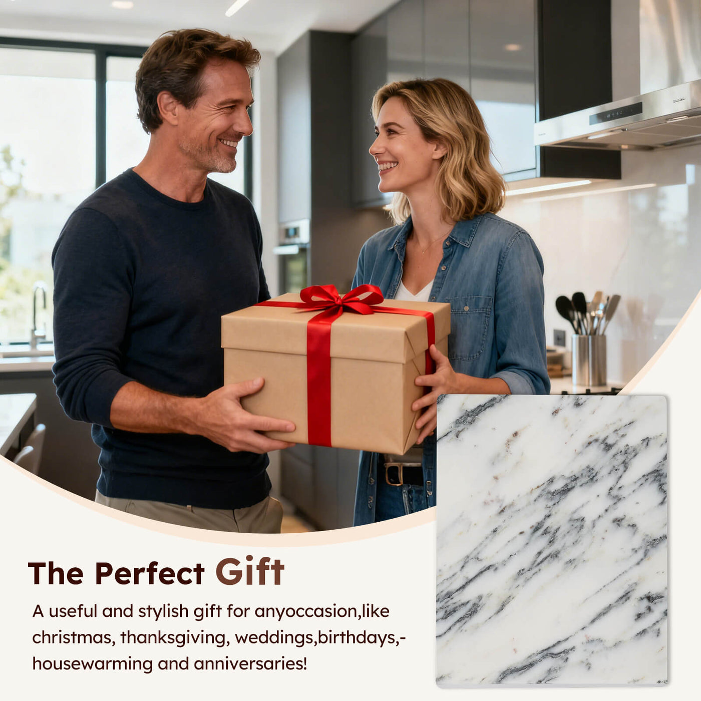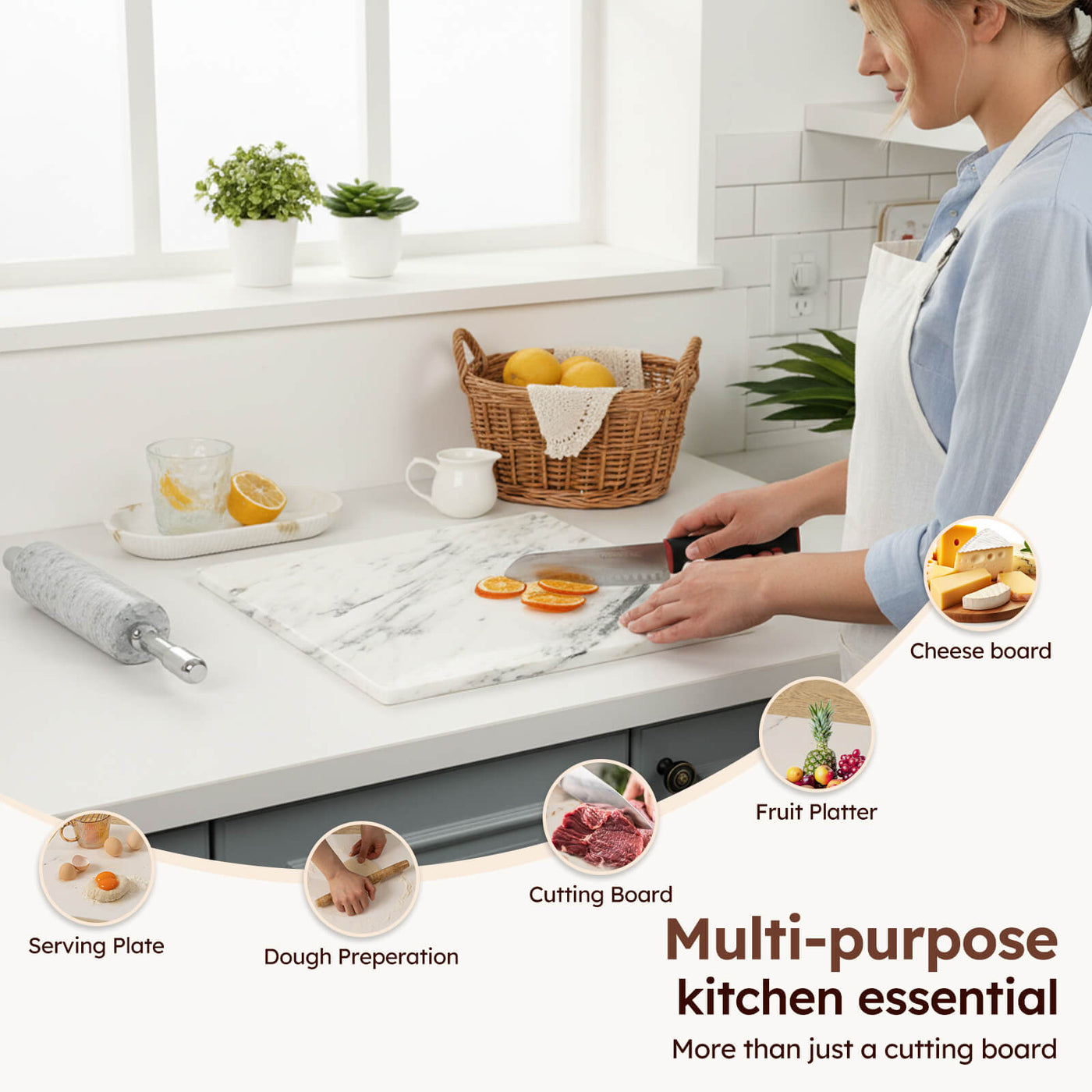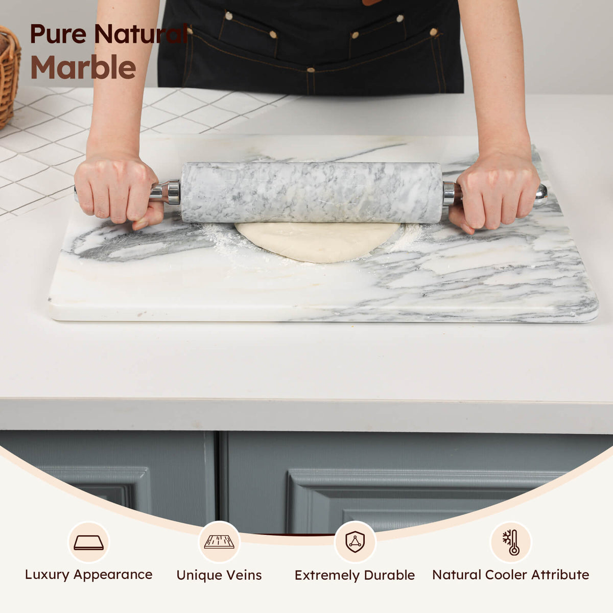 Diflart Natural Marble Stone Cutting Board for Kitchen, 16x20 Inch, Ink White, Marble Slab Pastry Board Large with Non-Slip Feet for Backing, Cheese, Chocolate, Pack of 1 Piece