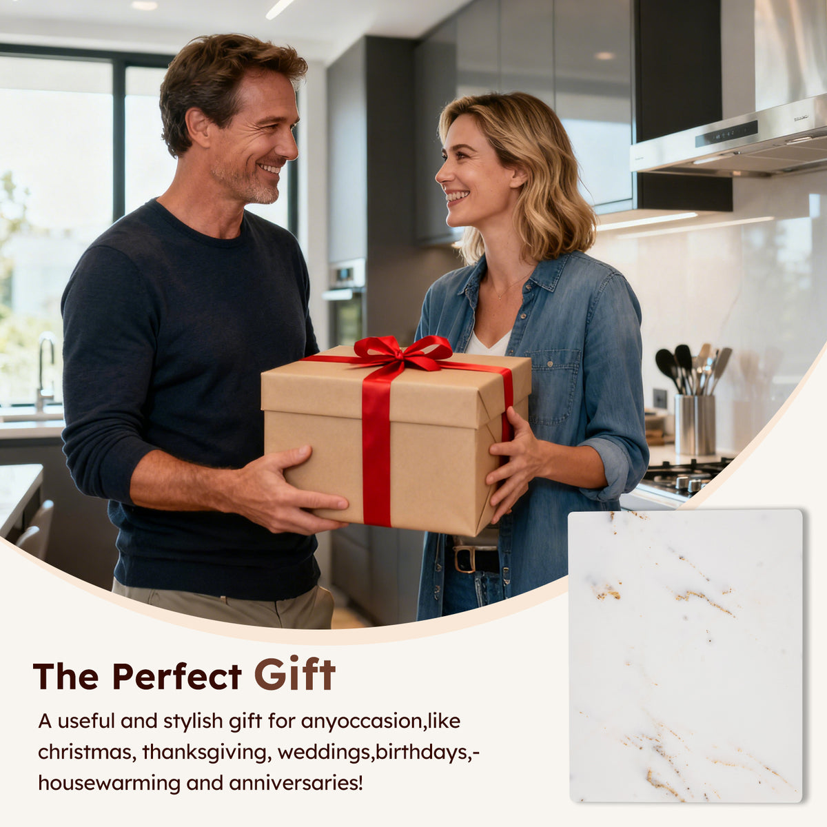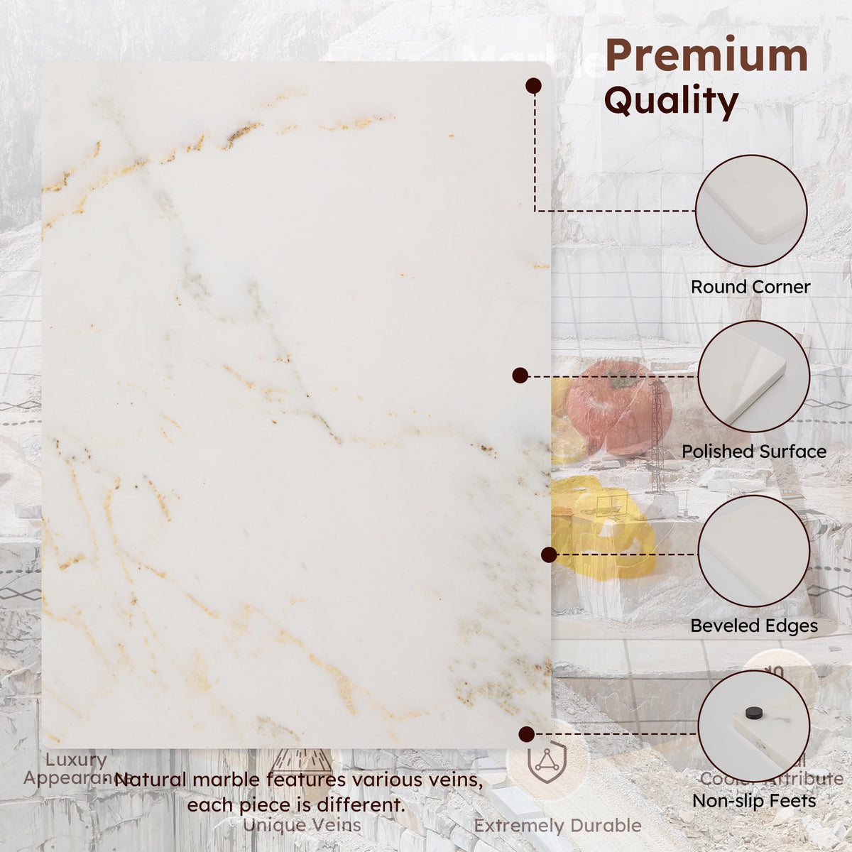 Diflart Natural Marble Stone Cutting Board for Kitchen, 16x20 Inch, White with Gold Veins, Marble Slab Pastry Board Large with Non-Slip Feet for Cheese, Charcuterie, Dough, Chocolate, Pack of 1 Pcs