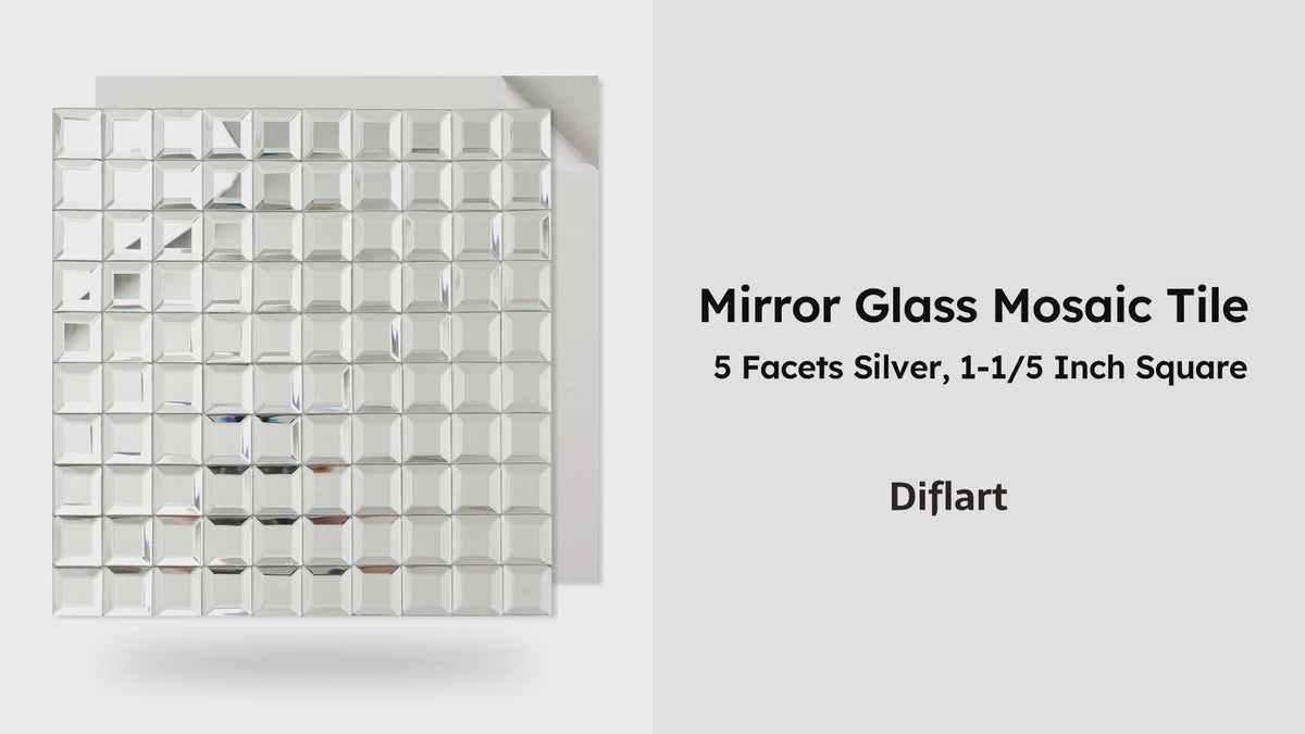 Inform when this item available Diflart Peel and Stick Mirror Glass Mosaic Tile, 1-1/5 Inch Silver Square, Crystal Diamond Mirror Tile Backsplash for Kitchen Bathroom Wall, Pack of 5 Sheets