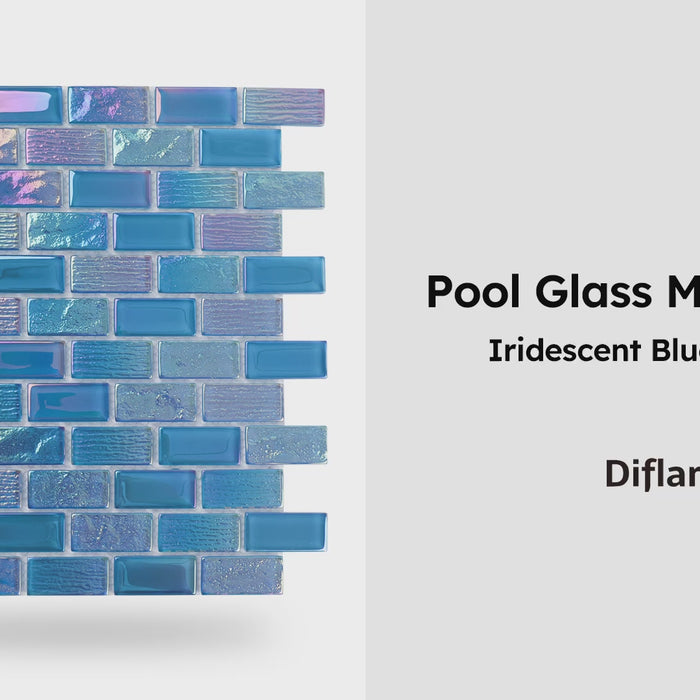 Inform when this item available Diflart Glass Mosiac Tile, Iridescent Blue, 1x2 Inch Brick, Glass Tiles for Swimming Pool, Kitchen Backsplash, Bathroom, Shower, Fountain, Spa Wall, Pack of 5 Sheets