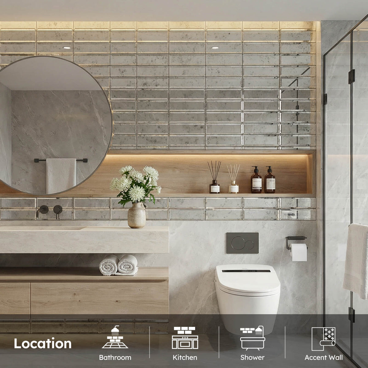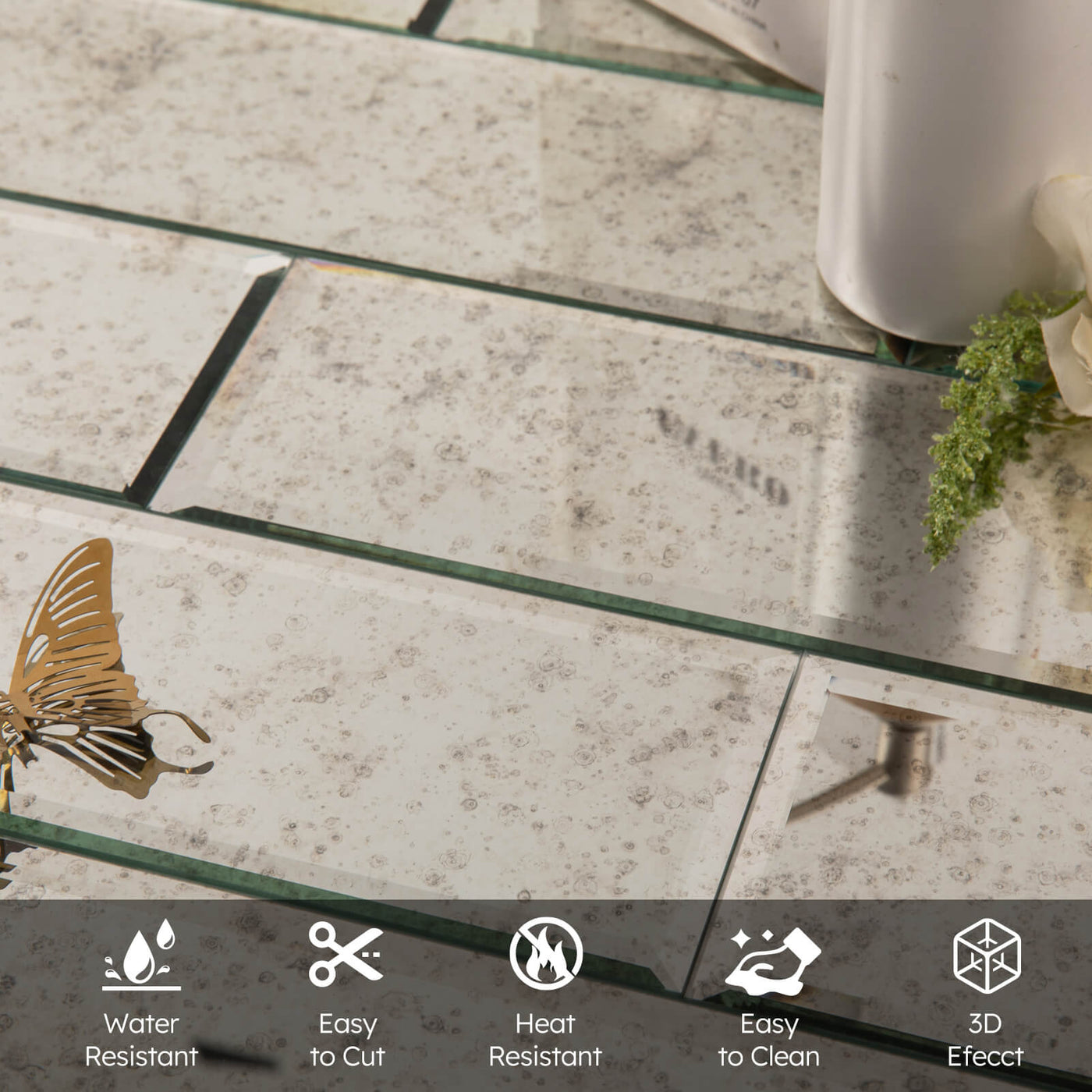 Inform when this item available Diflart Mirror Backsplash Tiles for Kitchen, Light Antique Subway, 3x10 Inch, Beveled Mirror TIile for Bathroom Wall (24 Pcs,5 Sq.ft)