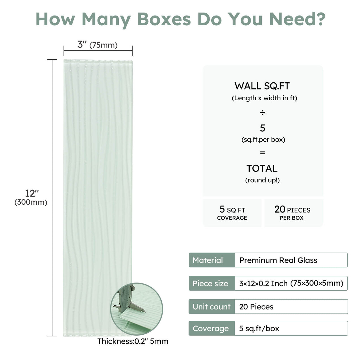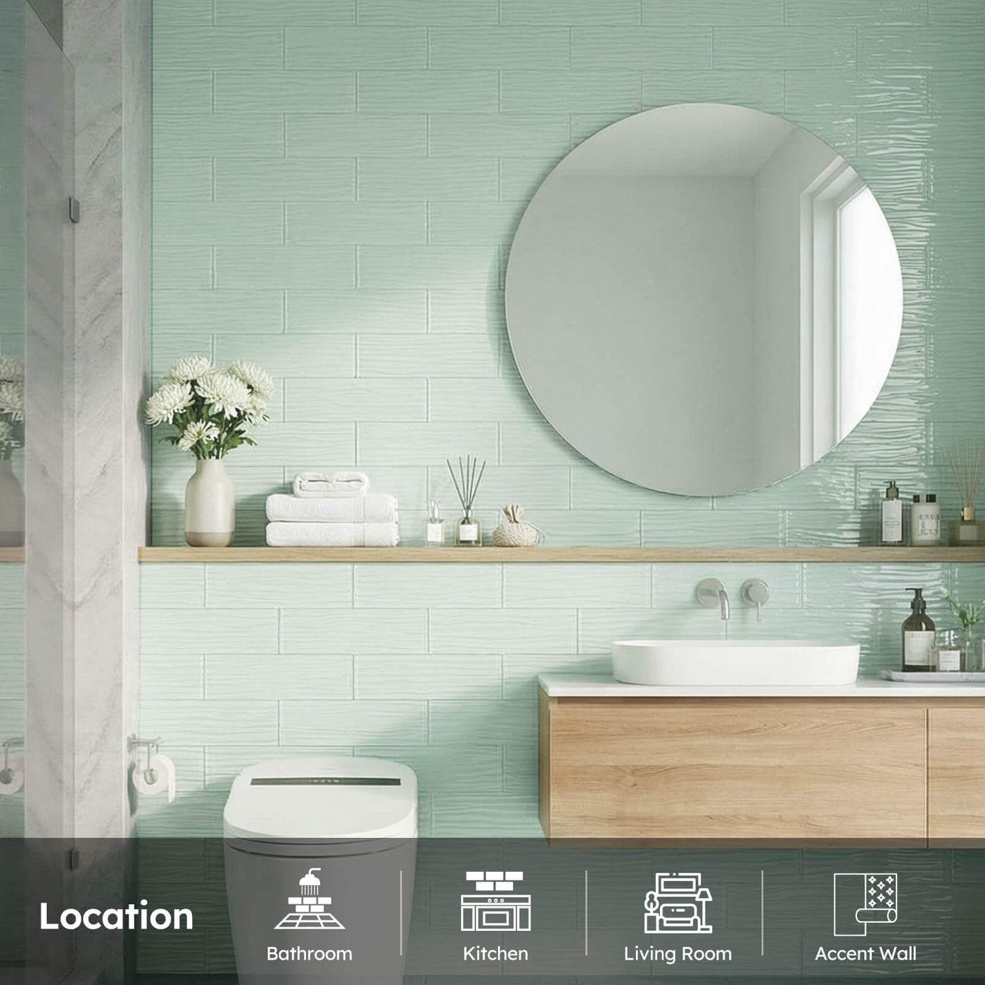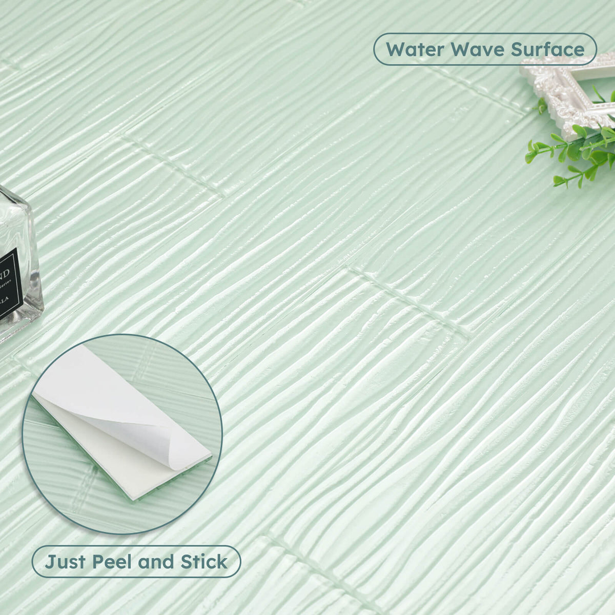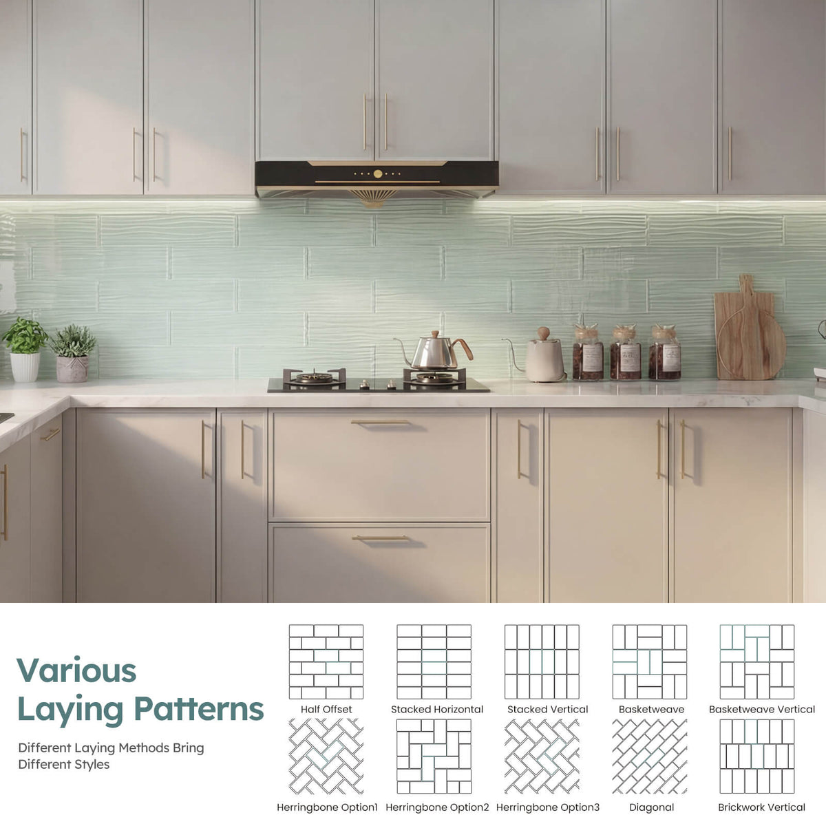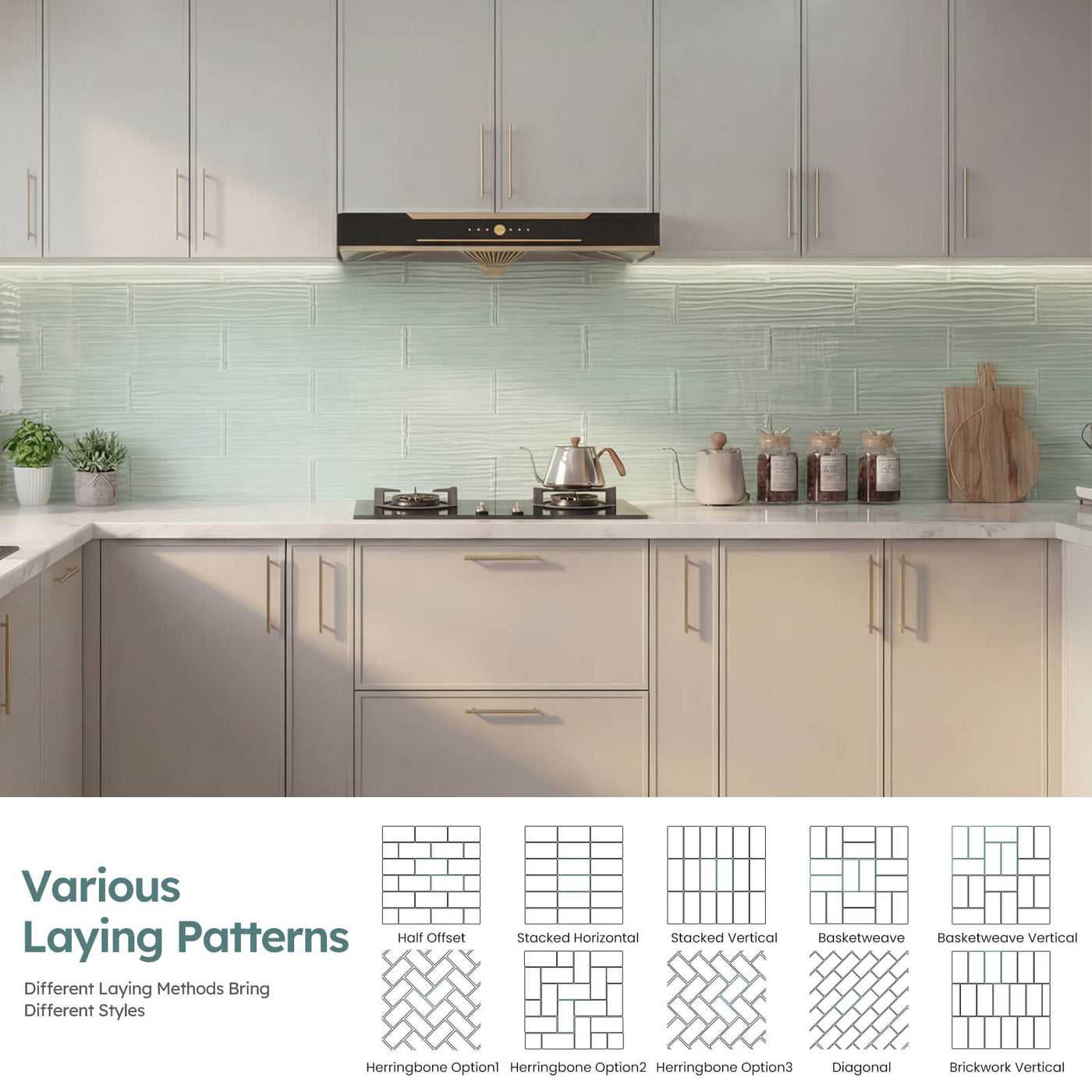 Inform when this item available Diflart Peel and Stick Glass Subway Tiles, Light Green, 3x12 Inch, Water Wave Glass Backsplash for Kitchen Bathroom Wall Tiles, Pack of 20 Pieces